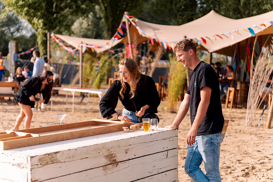De durfals sprongen in een ribboot en vlogen over het water, terwijl anderen hun balans zochten (en vonden!) tijdens het suppen. Voor wie liever op het droge bleef, was er geen moment om zich te vervelen: graffiti spuiten, tafeltennis, mega jenga, voetbaltafels – het barstte van de actie.