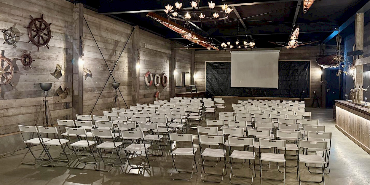 Met haar 250m2 is de Werf een zeer geschikte zaal voor presentaties tot zo'n 175 personen. Uiteraard kan zij omtovert worden in een sfeervolle plek voor een diner of een sprankelend feest.